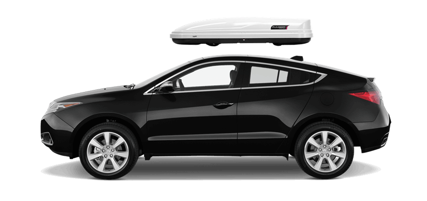 Thule Sonic Large 634S on Acura ZDX Patented AeroNose Design cuts through the air and reduces drag and noise | Patented Rear-Angled Base and expanded vehicle mounting points help maximize trunk and hatch clearance | AcuTight Mounting "clicks" when you reach optimal hold to ensure your box is secured to the rack | Oversized SecureLock ensures the box is closed securely and properly prior to driving | Dual-Side Opening for loading/unloading from either side of the vehicle