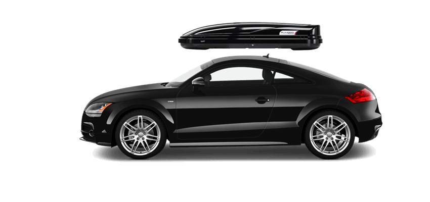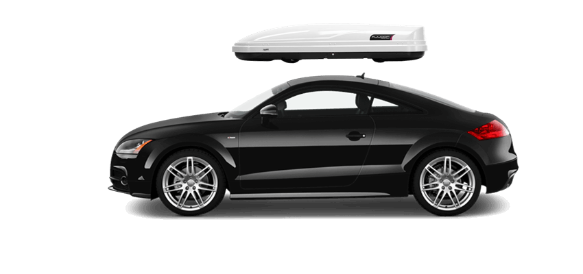 Thule Sonic XXL 636S on Audi TT Patented AeroNose Design cuts through the air and reduces drag and noise | Patented Rear-Angled Base and expanded vehicle mounting points help maximize trunk and hatch clearance | AcuTight Mounting "clicks" when you reach optimal hold to ensure your box is secured to the rack | Oversized SecureLock ensures the box is closed securely and properly prior to driving | Dual-Side Opening for loading/unloading from either side of the vehicle