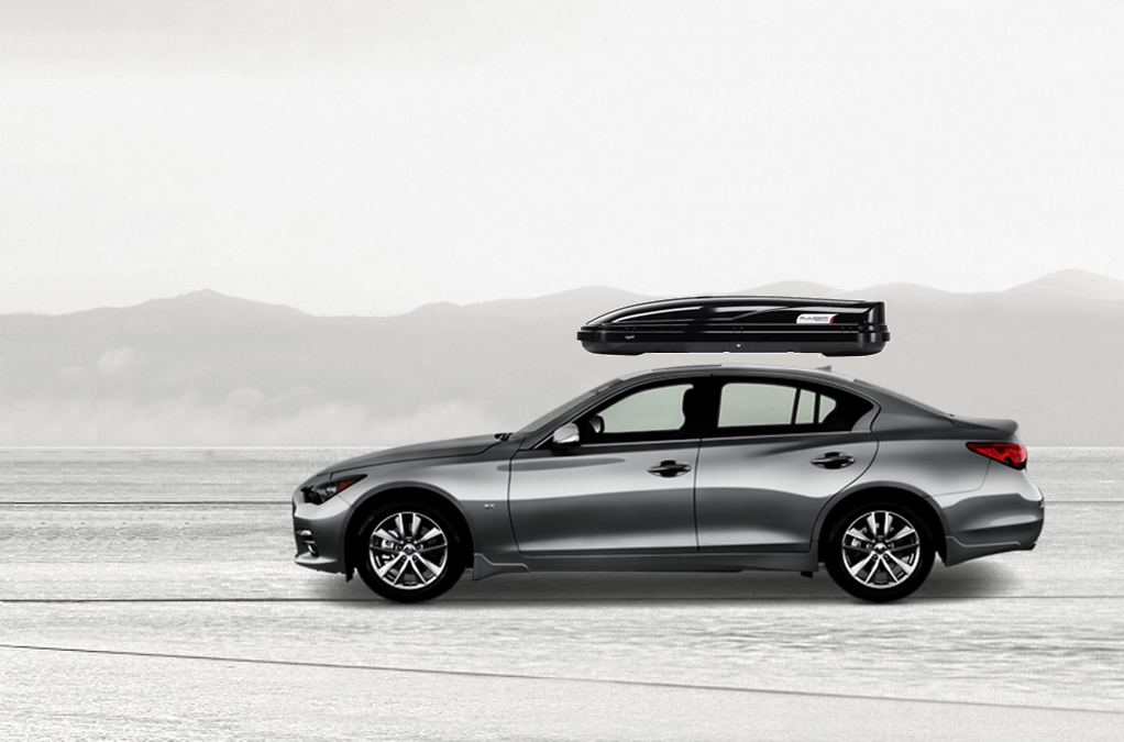 Yakima SkyBox Lo Carbonite on Infiniti Q50