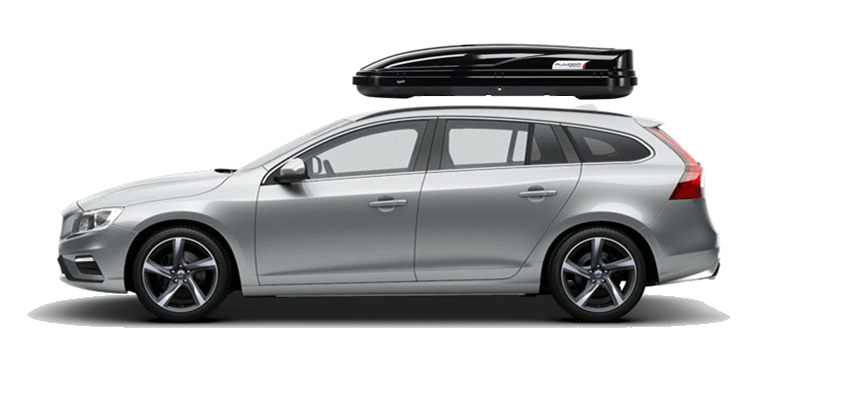 Thule Sonic XXL 636S on Volvo V60 Patented AeroNose Design cuts through the air and reduces drag and noise | Patented Rear-Angled Base and expanded vehicle mounting points help maximize trunk and hatch clearance | AcuTight Mounting "clicks" when you reach optimal hold to ensure your box is secured to the rack | Oversized SecureLock ensures the box is closed securely and properly prior to driving | Dual-Side Opening for loading/unloading from either side of the vehicle