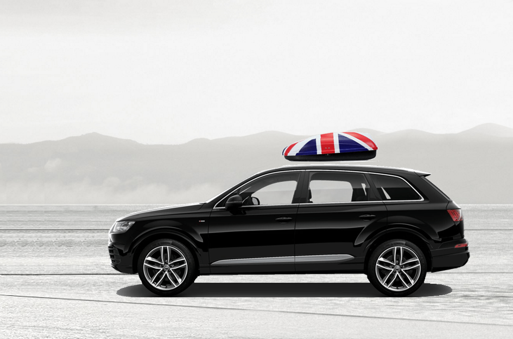 Volumen: 240 Liter; Farbe: UK-Flagge; Außenmaße: Länge 134 cm, Breite 72 cm, Höhe 38 cm | Maximale Tragkraft: 50 Kg; Gewicht: 10 Kg | Öffnungsseite: Rechtseitige Öffnung; Öffnungssystem: Federzirkel | Innere Spanngurte: nicht inklusive; Verriegelung: Schloss mit Sichereitsschlüssel; Werkstoff: P.S. UV Protected; Garantie: 3 Jahre | Dachträger: Alle Dachträger mit Breite bis 60 mm (Befestigungsadapter für Dachträger mit Breite bis 94 mm auf Wünsch vorhanden); Abstand der Dachträger: max. 85 cm