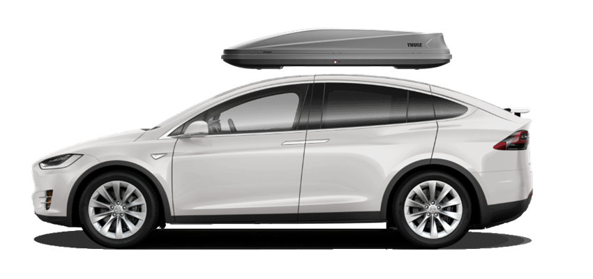 Thule Motion 800 schwarz auf Tesla Model X 205 x 84 x 45 cm