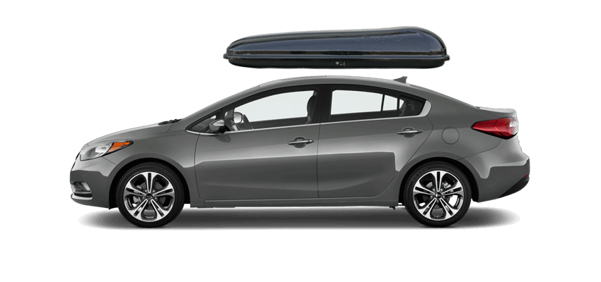 Yakima SkyBox Pro 18 Onyx en Kia Forte 92 x 36 x 16 in