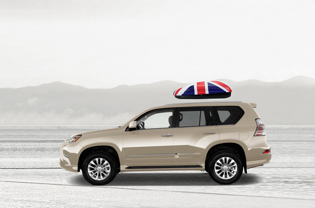 Capacité: 240 Litres; Couleur: drapeau UK; Dimension externe: longueur 134 cm, largeur 72 cm, hauteur 38 cm | Charge maximum: 50 Kg; Poids du coffre: 10 Kg | Ouverture (Côté): Latéral droite; Système d'ouverture: Vérins à ressort | Sangles de retenue des objets: Pas comprises; Fermeture: Serrure à clé; Matériel: P.S. UV Protected; Garantie du producteur: 3 ans | Type de barres compatibles: Toutes les barres avec largeur jusqu'à 60 mm (adapteur pour barres avec largeur jusqu'à 94 mm disponible sur demande); Distance min/max entre les barres: distance maximale 85 cm