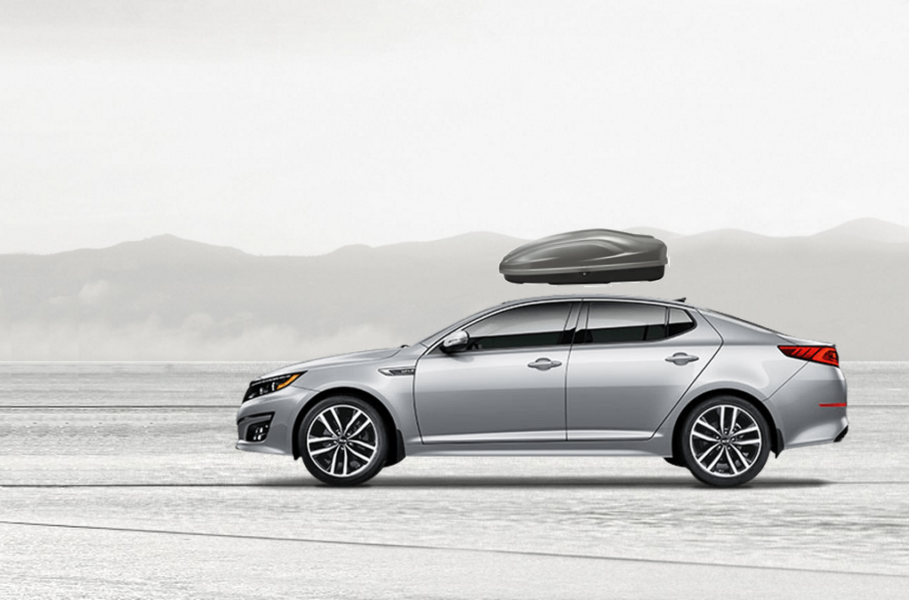 Yakima SkyBox Pro 16 Titanium sulla Kia Optima 81 x 36 x 15 in