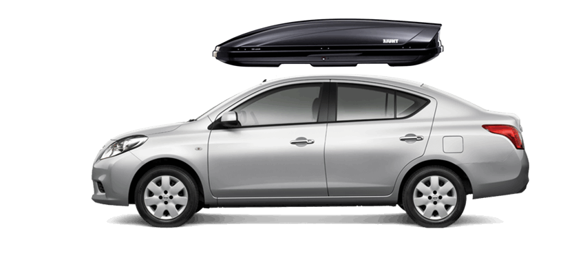 Thule Motion 900 nero sulla Nissan Almera 235 x 94 x 47 cm