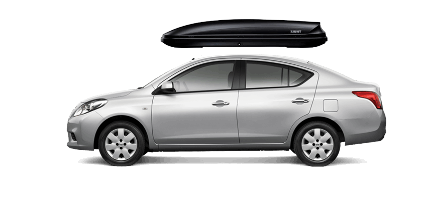 Thule Motion 600 nero sulla Nissan Almera 190 x 67 x 42 cm