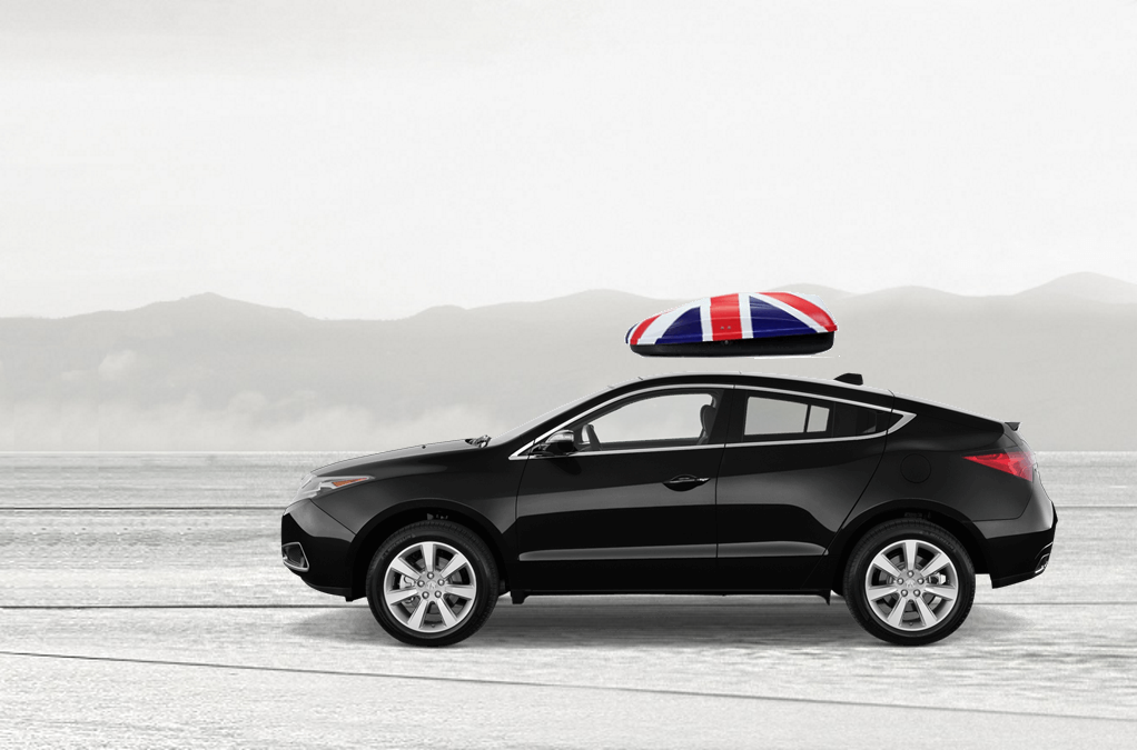 Volume: 240 liters; Colour: UK flag; External dimensions: lenght 134 cm, width 72 cm, height 38 cm | Maximum load: 50 Kg; Box weight: 10 Kg | Opening (side): Right hand opening; Opening (system): Spring struts | Load retaining straps: Non included; Lock: Locking system with key; Material: UV-rays resistant plastic.; Warranty: 3 years | Adaptable with bars: Any roof bars up to 6 cm wide (for more than 6 cm wide bars, a specific adaptation kit is provided on demand); Spacing between bars: maximum 85 cm