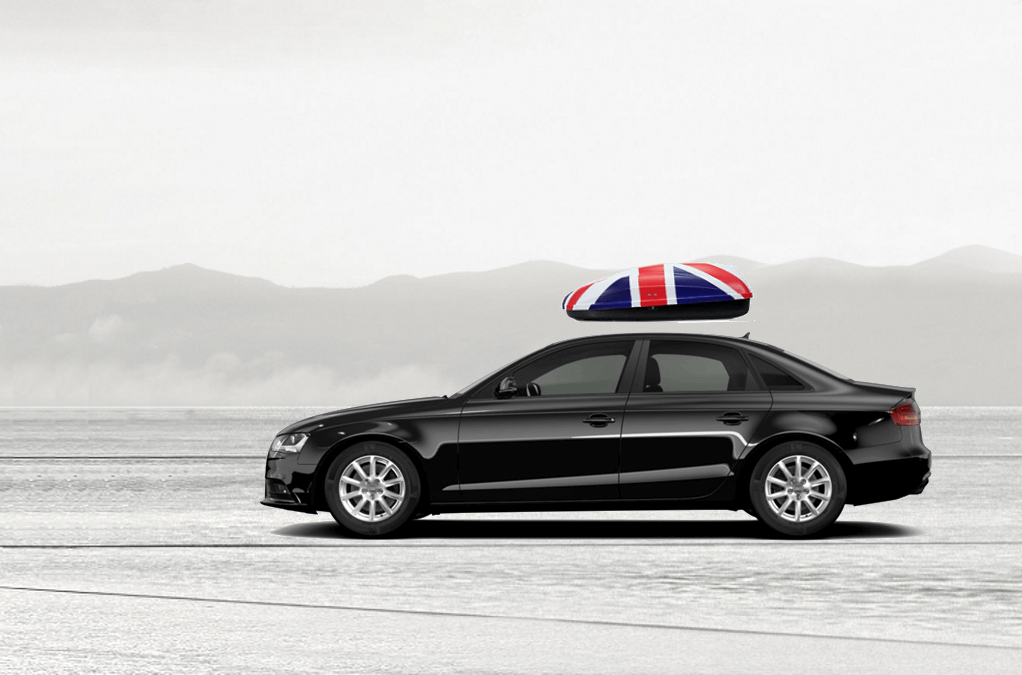 Volume: 240 liters; Colour: UK flag; External dimensions: lenght 134 cm, width 72 cm, height 38 cm | Maximum load: 50 Kg; Box weight: 10 Kg | Opening (side): Right hand opening; Opening (system): Spring struts | Load retaining straps: Non included; Lock: Locking system with key; Material: UV-rays resistant plastic.; Warranty: 3 years | Adaptable with bars: Any roof bars up to 6 cm wide (for more than 6 cm wide bars, a specific adaptation kit is provided on demand); Spacing between bars: maximum 85 cm