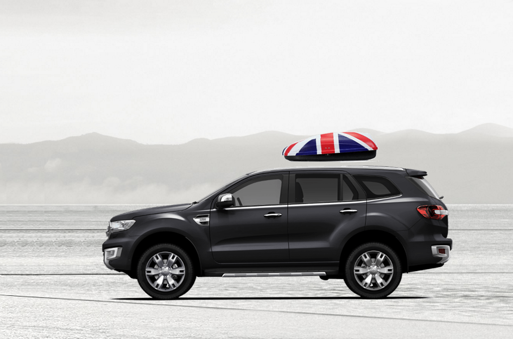 Volume: 240 liters; Colour: UK flag; External dimensions: lenght 134 cm, width 72 cm, height 38 cm | Maximum load: 50 Kg; Box weight: 10 Kg | Opening (side): Right hand opening; Opening (system): Spring struts | Load retaining straps: Non included; Lock: Locking system with key; Material: UV-rays resistant plastic.; Warranty: 3 years | Adaptable with bars: Any roof bars up to 6 cm wide (for more than 6 cm wide bars, a specific adaptation kit is provided on demand); Spacing between bars: maximum 85 cm