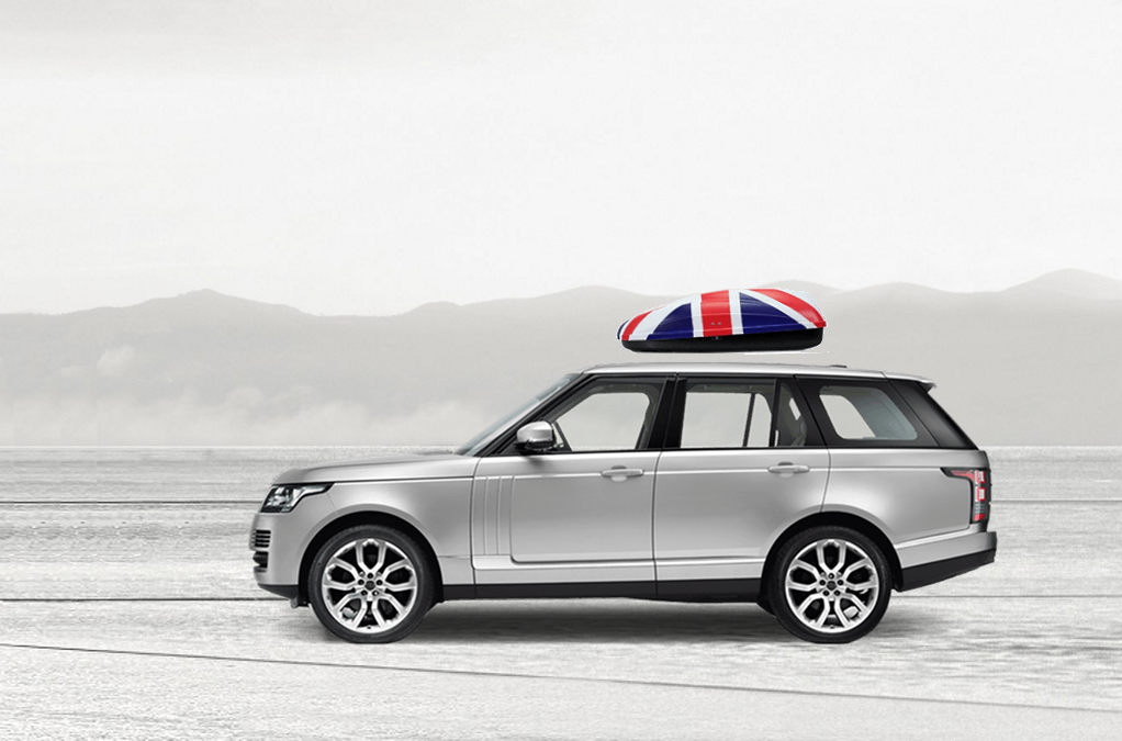 Volume: 240 liters; Colour: UK flag; External dimensions: lenght 134 cm, width 72 cm, height 38 cm | Maximum load: 50 Kg; Box weight: 10 Kg | Opening (side): Right hand opening; Opening (system): Spring struts | Load retaining straps: Non included; Lock: Locking system with key; Material: UV-rays resistant plastic.; Warranty: 3 years | Adaptable with bars: Any roof bars up to 6 cm wide (for more than 6 cm wide bars, a specific adaptation kit is provided on demand); Spacing between bars: maximum 85 cm