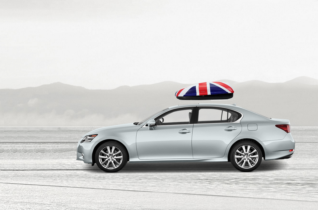 Volume: 240 liters; Colour: UK flag; External dimensions: lenght 134 cm, width 72 cm, height 38 cm | Maximum load: 50 Kg; Box weight: 10 Kg | Opening (side): Right hand opening; Opening (system): Spring struts | Load retaining straps: Non included; Lock: Locking system with key; Material: UV-rays resistant plastic.; Warranty: 3 years | Adaptable with bars: Any roof bars up to 6 cm wide (for more than 6 cm wide bars, a specific adaptation kit is provided on demand); Spacing between bars: maximum 85 cm