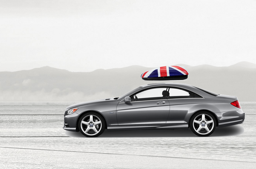 Volume: 240 liters; Colour: UK flag; External dimensions: lenght 134 cm, width 72 cm, height 38 cm | Maximum load: 50 Kg; Box weight: 10 Kg | Opening (side): Right hand opening; Opening (system): Spring struts | Load retaining straps: Non included; Lock: Locking system with key; Material: UV-rays resistant plastic.; Warranty: 3 years | Adaptable with bars: Any roof bars up to 6 cm wide (for more than 6 cm wide bars, a specific adaptation kit is provided on demand); Spacing between bars: maximum 85 cm