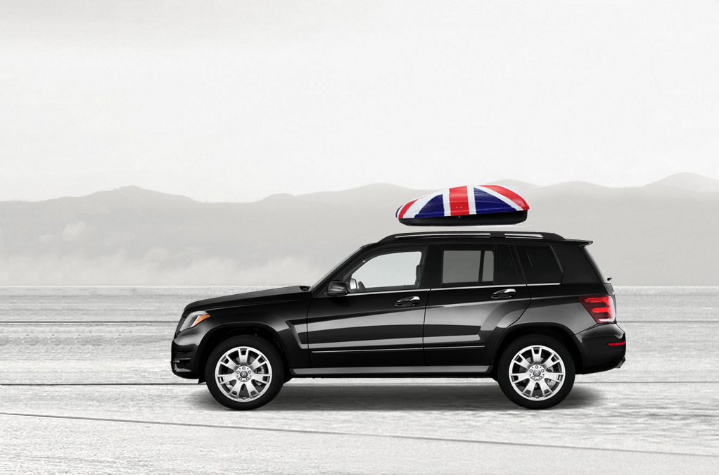 Volume: 240 liters; Colour: UK flag; External dimensions: lenght 134 cm, width 72 cm, height 38 cm | Maximum load: 50 Kg; Box weight: 10 Kg | Opening (side): Right hand opening; Opening (system): Spring struts | Load retaining straps: Non included; Lock: Locking system with key; Material: UV-rays resistant plastic.; Warranty: 3 years | Adaptable with bars: Any roof bars up to 6 cm wide (for more than 6 cm wide bars, a specific adaptation kit is provided on demand); Spacing between bars: maximum 85 cm
