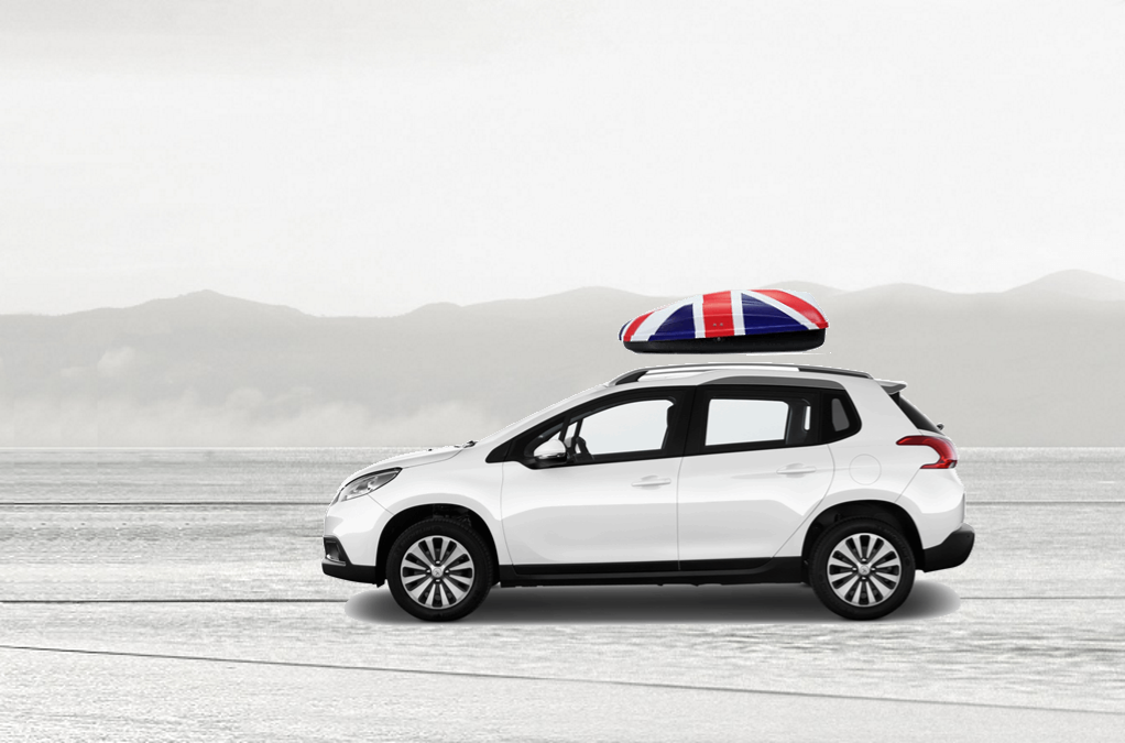 Volume: 240 liters; Colour: UK flag; External dimensions: lenght 134 cm, width 72 cm, height 38 cm | Maximum load: 50 Kg; Box weight: 10 Kg | Opening (side): Right hand opening; Opening (system): Spring struts | Load retaining straps: Non included; Lock: Locking system with key; Material: UV-rays resistant plastic.; Warranty: 3 years | Adaptable with bars: Any roof bars up to 6 cm wide (for more than 6 cm wide bars, a specific adaptation kit is provided on demand); Spacing between bars: maximum 85 cm
