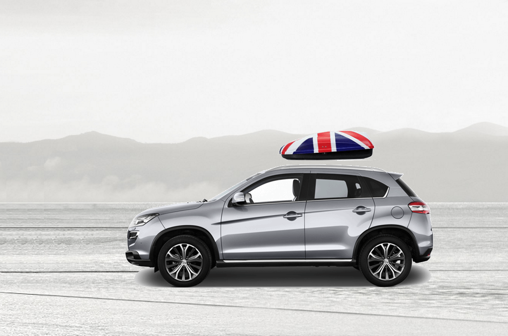 Volume: 240 liters; Colour: UK flag; External dimensions: lenght 134 cm, width 72 cm, height 38 cm | Maximum load: 50 Kg; Box weight: 10 Kg | Opening (side): Right hand opening; Opening (system): Spring struts | Load retaining straps: Non included; Lock: Locking system with key; Material: UV-rays resistant plastic.; Warranty: 3 years | Adaptable with bars: Any roof bars up to 6 cm wide (for more than 6 cm wide bars, a specific adaptation kit is provided on demand); Spacing between bars: maximum 85 cm