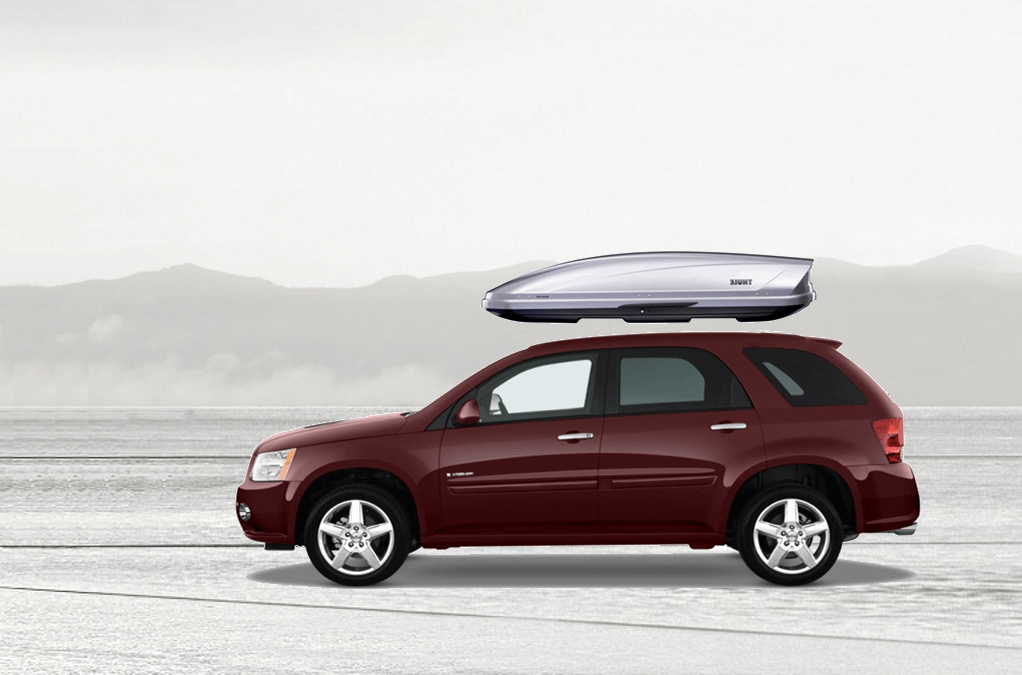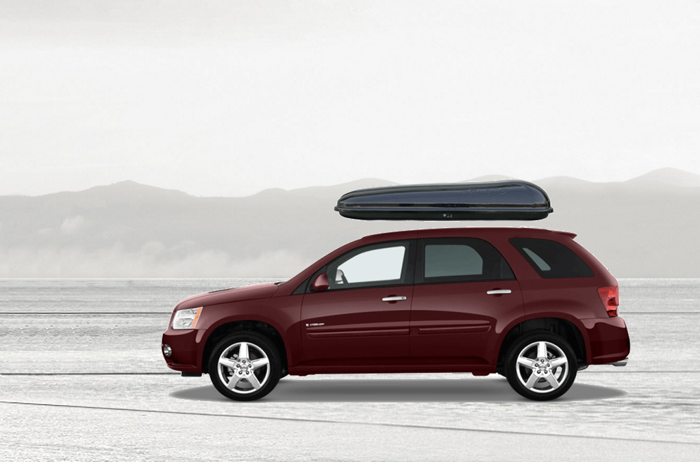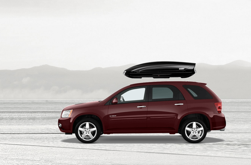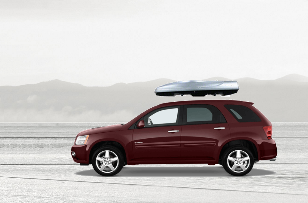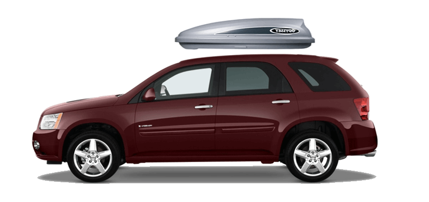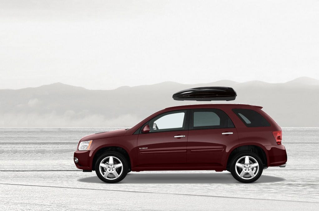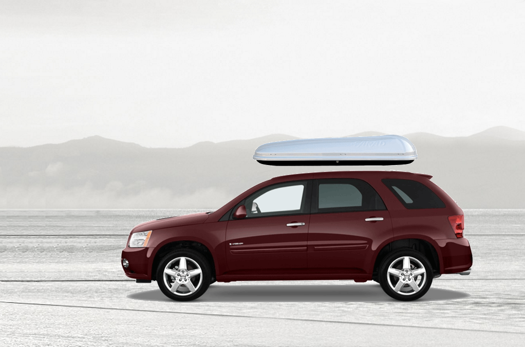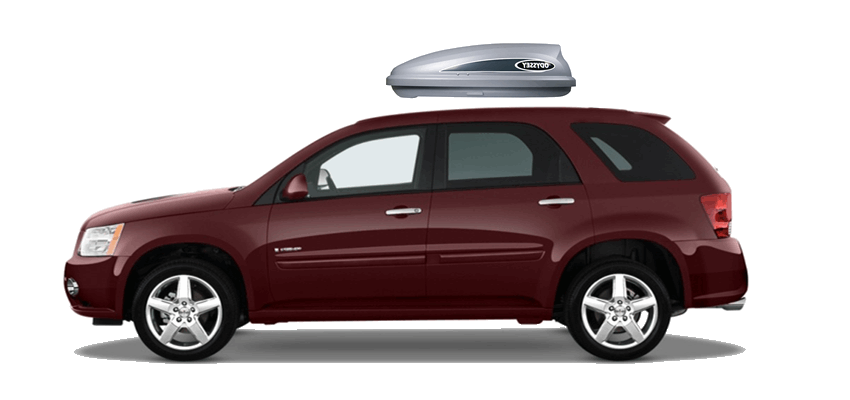 Equip Torino 3000 on Pontiac Torrent 140 x 91 x 38 cm 350 l Equip Torino 3000 Roof Box. 350L capacity premium roof box in a gloss Silver / Grey Metallic finish. Equip Torino 3000 on Pontiac Torrent