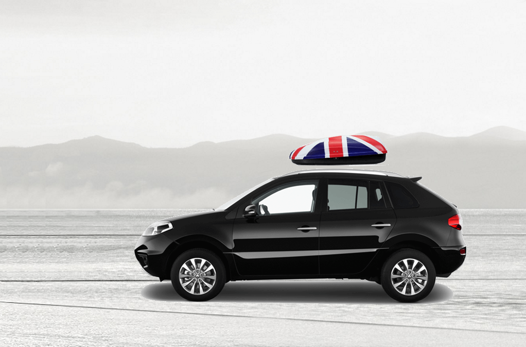 Volume: 240 liters; Colour: UK flag; External dimensions: lenght 134 cm, width 72 cm, height 38 cm | Maximum load: 50 Kg; Box weight: 10 Kg | Opening (side): Right hand opening; Opening (system): Spring struts | Load retaining straps: Non included; Lock: Locking system with key; Material: UV-rays resistant plastic.; Warranty: 3 years | Adaptable with bars: Any roof bars up to 6 cm wide (for more than 6 cm wide bars, a specific adaptation kit is provided on demand); Spacing between bars: maximum 85 cm