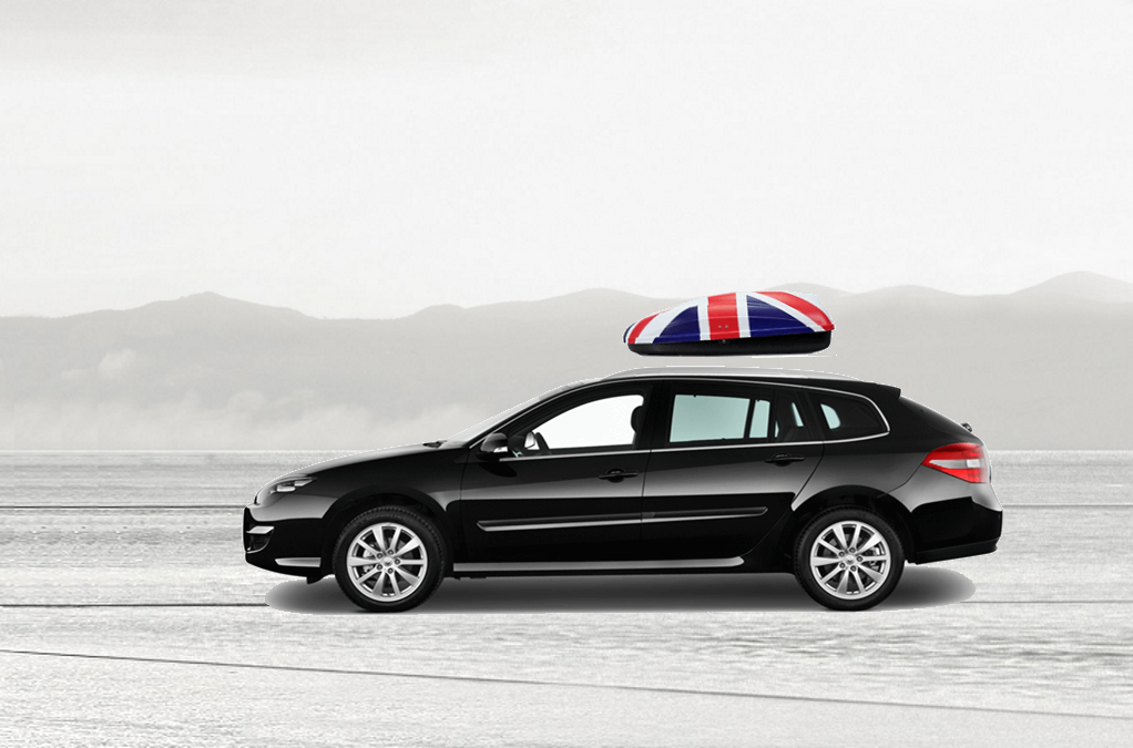 Volume: 240 liters; Colour: UK flag; External dimensions: lenght 134 cm, width 72 cm, height 38 cm | Maximum load: 50 Kg; Box weight: 10 Kg | Opening (side): Right hand opening; Opening (system): Spring struts | Load retaining straps: Non included; Lock: Locking system with key; Material: UV-rays resistant plastic.; Warranty: 3 years | Adaptable with bars: Any roof bars up to 6 cm wide (for more than 6 cm wide bars, a specific adaptation kit is provided on demand); Spacing between bars: maximum 85 cm
