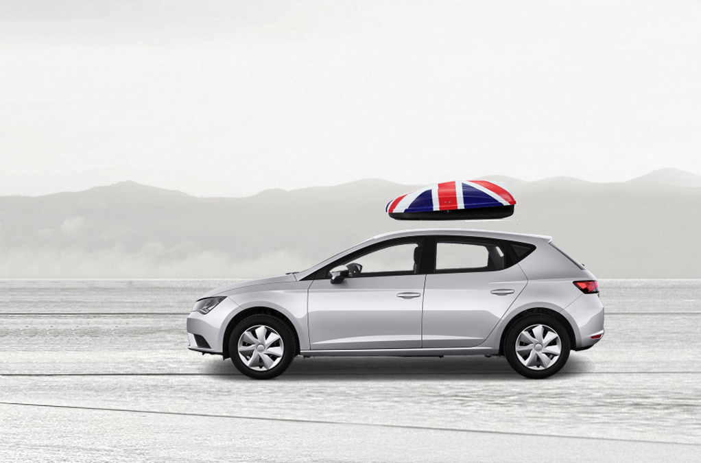 Volume: 240 liters; Colour: UK flag; External dimensions: lenght 134 cm, width 72 cm, height 38 cm | Maximum load: 50 Kg; Box weight: 10 Kg | Opening (side): Right hand opening; Opening (system): Spring struts | Load retaining straps: Non included; Lock: Locking system with key; Material: UV-rays resistant plastic.; Warranty: 3 years | Adaptable with bars: Any roof bars up to 6 cm wide (for more than 6 cm wide bars, a specific adaptation kit is provided on demand); Spacing between bars: maximum 85 cm