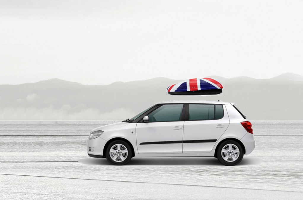 Volume: 240 liters; Colour: UK flag; External dimensions: lenght 134 cm, width 72 cm, height 38 cm | Maximum load: 50 Kg; Box weight: 10 Kg | Opening (side): Right hand opening; Opening (system): Spring struts | Load retaining straps: Non included; Lock: Locking system with key; Material: UV-rays resistant plastic.; Warranty: 3 years | Adaptable with bars: Any roof bars up to 6 cm wide (for more than 6 cm wide bars, a specific adaptation kit is provided on demand); Spacing between bars: maximum 85 cm