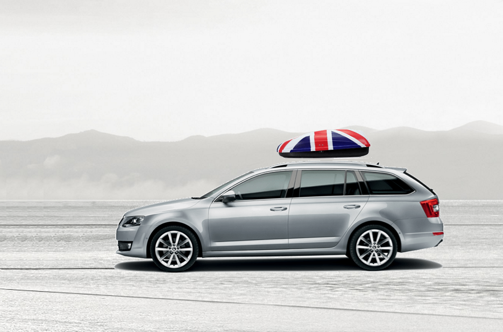 Volume: 240 liters; Colour: UK flag; External dimensions: lenght 134 cm, width 72 cm, height 38 cm | Maximum load: 50 Kg; Box weight: 10 Kg | Opening (side): Right hand opening; Opening (system): Spring struts | Load retaining straps: Non included; Lock: Locking system with key; Material: UV-rays resistant plastic.; Warranty: 3 years | Adaptable with bars: Any roof bars up to 6 cm wide (for more than 6 cm wide bars, a specific adaptation kit is provided on demand); Spacing between bars: maximum 85 cm