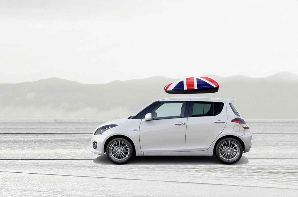 Volume: 240 liters; Colour: UK flag; External dimensions: lenght 134 cm, width 72 cm, height 38 cm | Maximum load: 50 Kg; Box weight: 10 Kg | Opening (side): Right hand opening; Opening (system): Spring struts | Load retaining straps: Non included; Lock: Locking system with key; Material: UV-rays resistant plastic.; Warranty: 3 years | Adaptable with bars: Any roof bars up to 6 cm wide (for more than 6 cm wide bars, a specific adaptation kit is provided on demand); Spacing between bars: maximum 85 cm