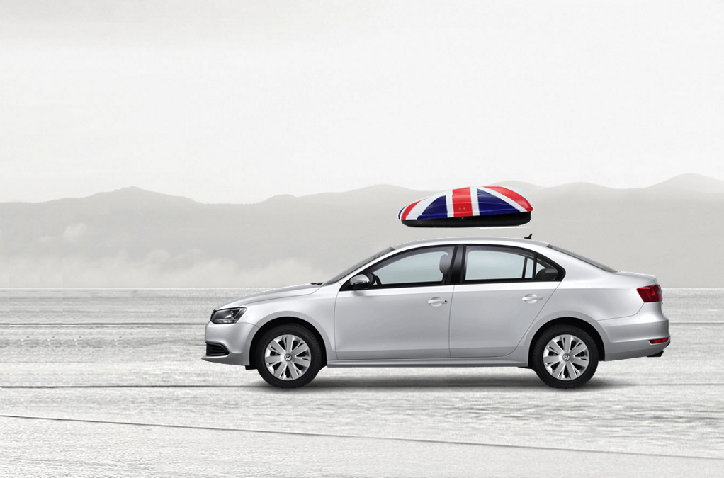 Volume: 240 liters; Colour: UK flag; External dimensions: lenght 134 cm, width 72 cm, height 38 cm | Maximum load: 50 Kg; Box weight: 10 Kg | Opening (side): Right hand opening; Opening (system): Spring struts | Load retaining straps: Non included; Lock: Locking system with key; Material: UV-rays resistant plastic.; Warranty: 3 years | Adaptable with bars: Any roof bars up to 6 cm wide (for more than 6 cm wide bars, a specific adaptation kit is provided on demand); Spacing between bars: maximum 85 cm
