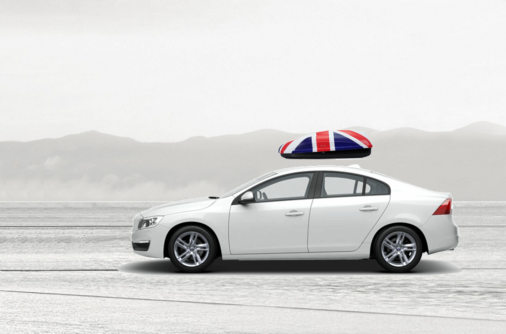 Volume: 240 liters; Colour: UK flag; External dimensions: lenght 134 cm, width 72 cm, height 38 cm | Maximum load: 50 Kg; Box weight: 10 Kg | Opening (side): Right hand opening; Opening (system): Spring struts | Load retaining straps: Non included; Lock: Locking system with key; Material: UV-rays resistant plastic.; Warranty: 3 years | Adaptable with bars: Any roof bars up to 6 cm wide (for more than 6 cm wide bars, a specific adaptation kit is provided on demand); Spacing between bars: maximum 85 cm