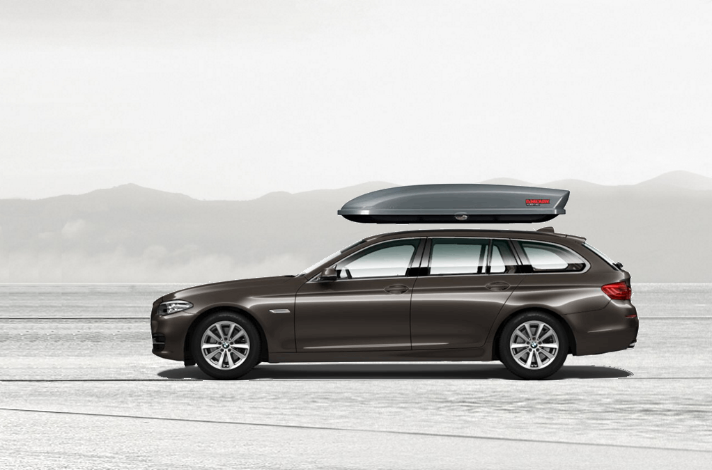 Yakima SkyBox LoPro Titanium on BMW 5 92 x 36 x 11.5 cm