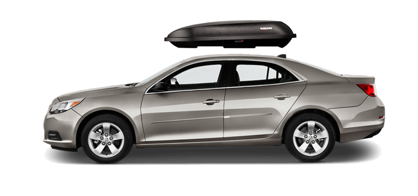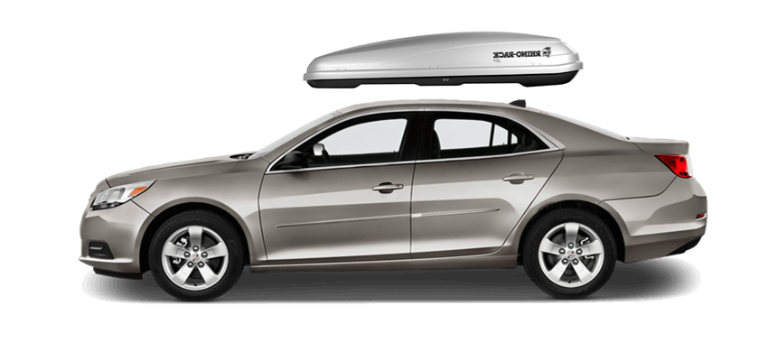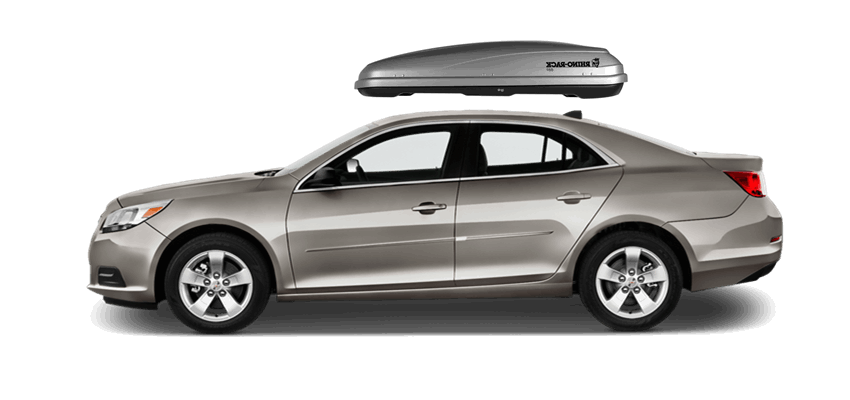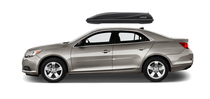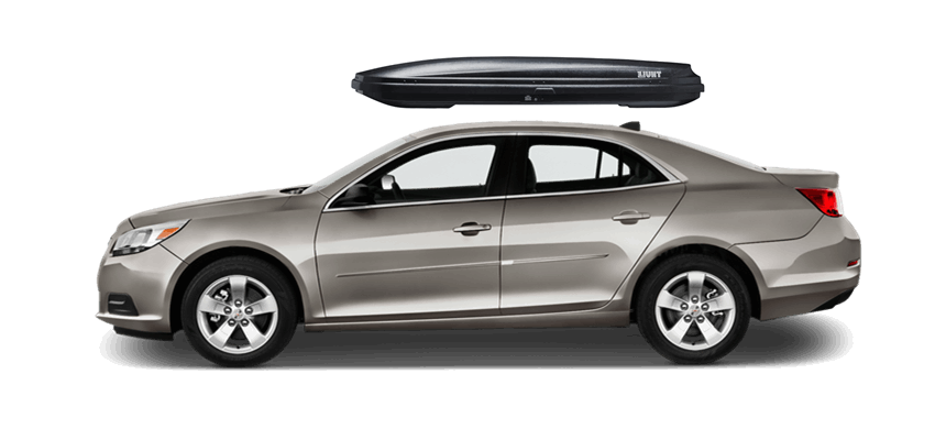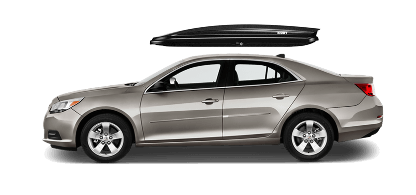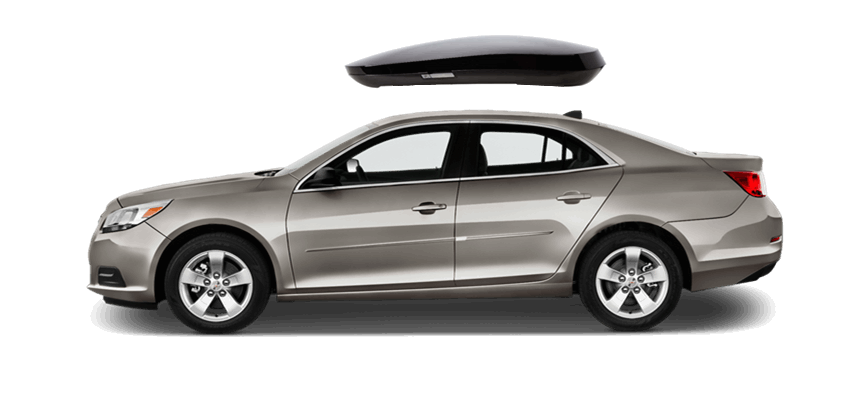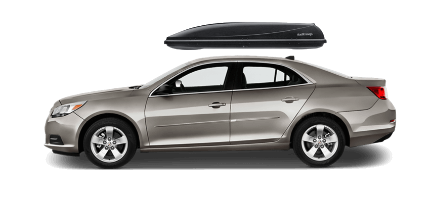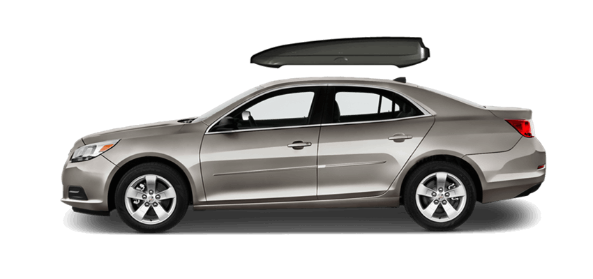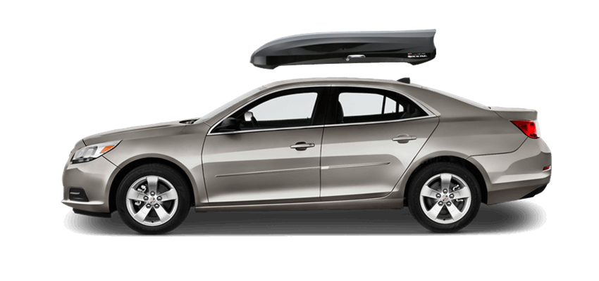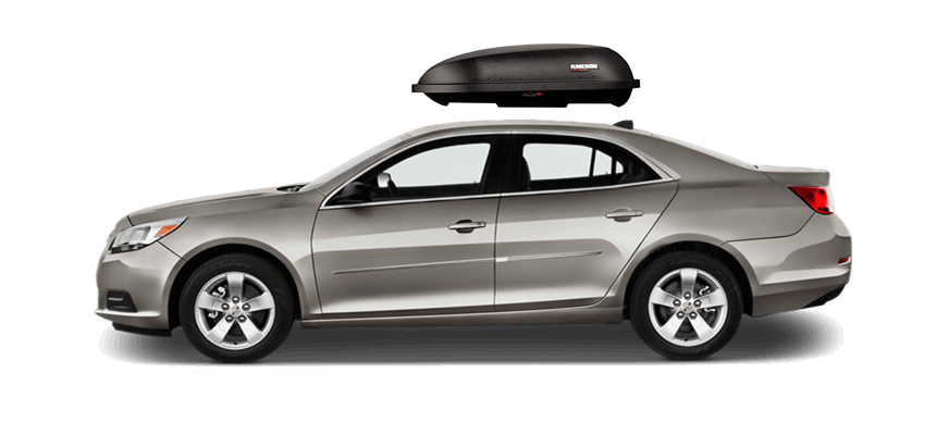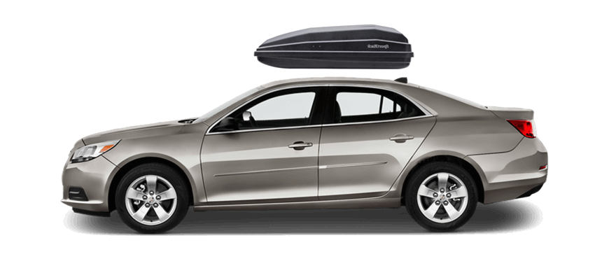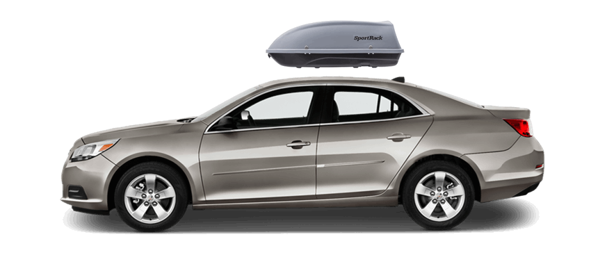 SportRack Aero XL on Chevrolet Malibu 63 x 38 x 19 in 18 cu 18 cu. ft. (509 liter) capacity | Mounts directly to most OEM and aftermarket crossbars with included Quick Release u-bolt mounting kit | Rear-opening design includes a lock for secure, easy access | ABS construction is durable and UV-resistant | Dimensions: 63"(l) x 38"(w) x 19"(h) / 38 lbs (17 kg), Maximum load of 110 lbs (50 kg) SportRack Aero XL on Chevrolet Malibu