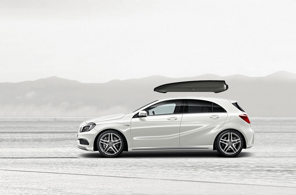 Yakima SkyBox Pro 12 Titanium on Mercedes A